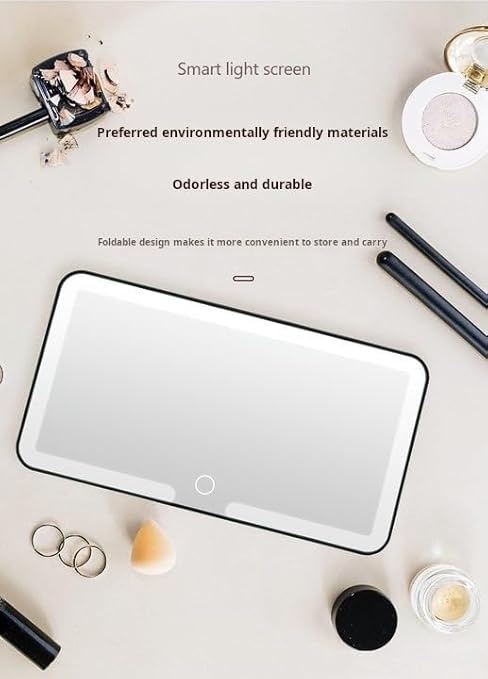 Espejo de Maquillaje Trifolding con Luz LED, Espejo de Tocador Portátil USB y Batería