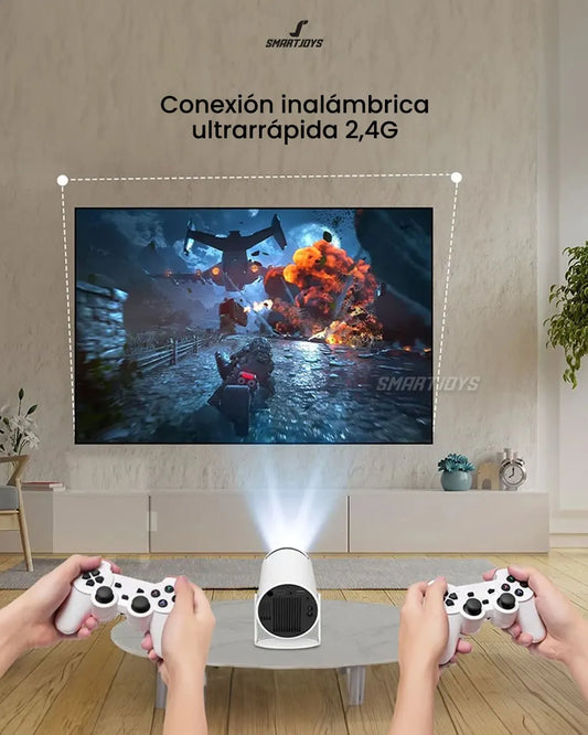 Proyector P30 MAX 4K con Android, WiFi y 2 Controles, Noches de Películas y Juegos sin Límites.